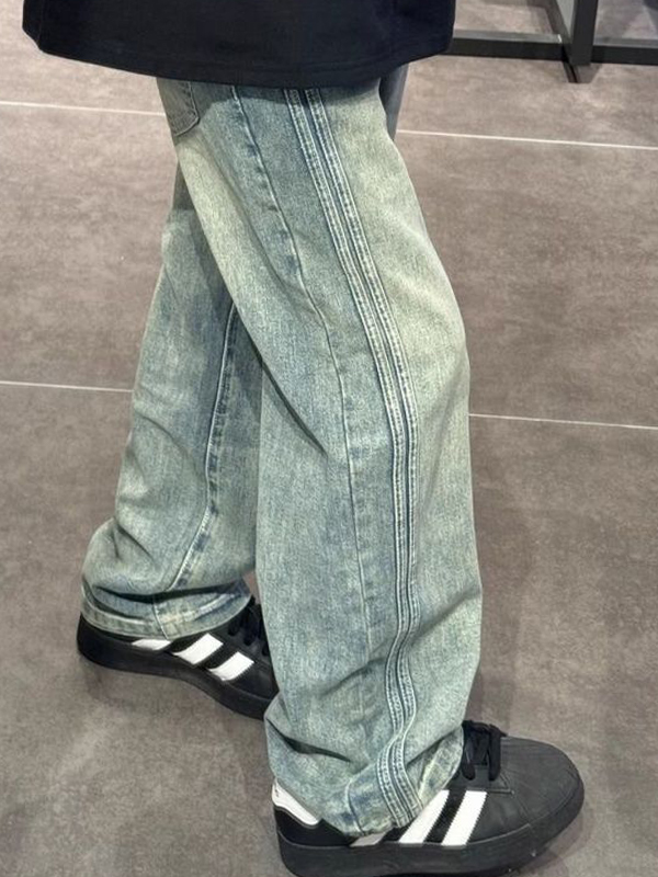 Vaqueros de pierna recta con ribete crudo desgastados vintage para hombre