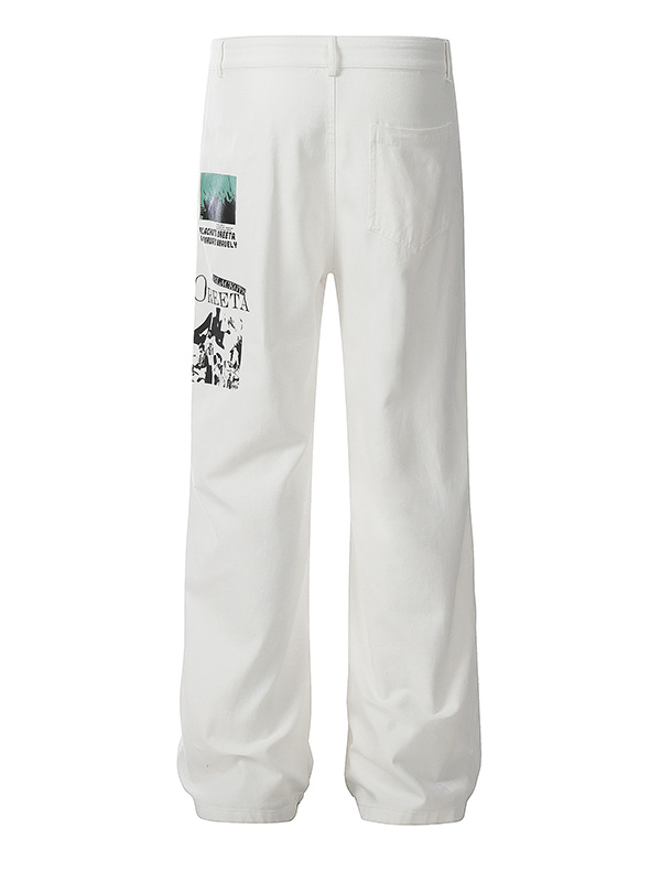 Pantalones deportivos de pierna recta con bolsillo y estampado de parches