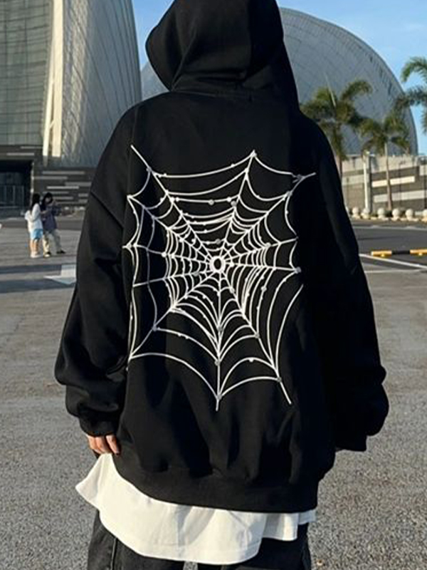 Sudadera con capucha extragrande con estampado de telaraña Hip Pop para hombre
