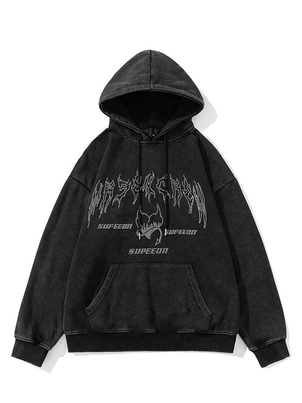Sudadera con capucha extragrande con diamantes de imitación y dragón para hombre