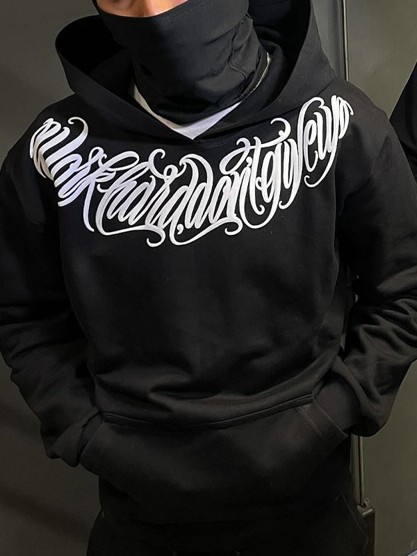 Sudadera con capucha de manga larga extragrande con estampado oscuro para hombre