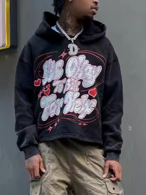 Sudadera con capucha de manga larga y letras de gran tamaño para hombre