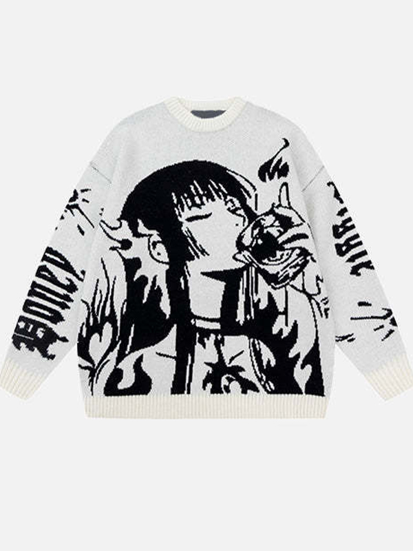 Suéter con estampado de perro de dibujos animados de piel de visón sintética