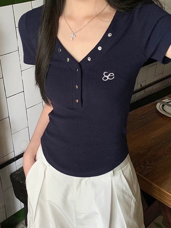 Prendas de punto de manga corta con escote en V