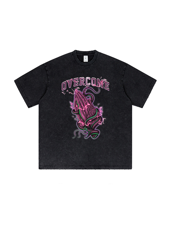 Camiseta de manga corta extragrande lavada con estampado oscuro para hombre