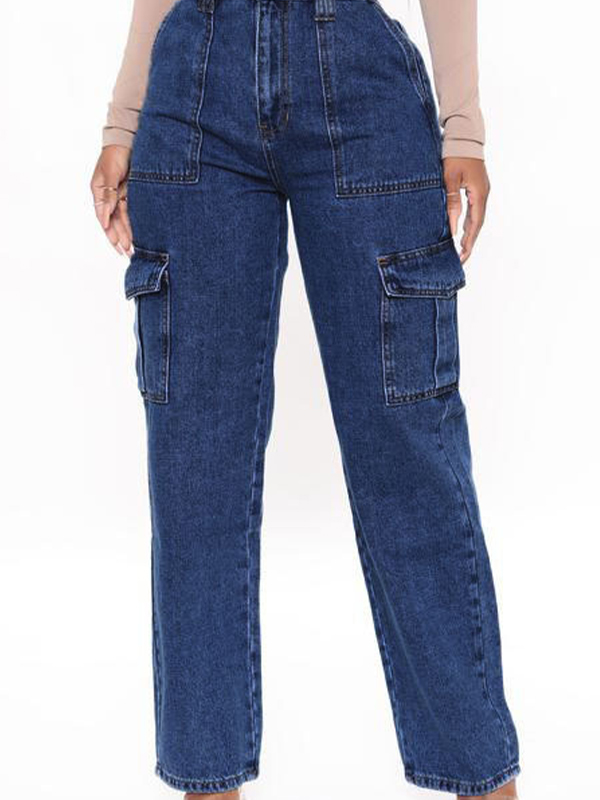Vaqueros cargo holgados de color azul claro con múltiples bolsillos