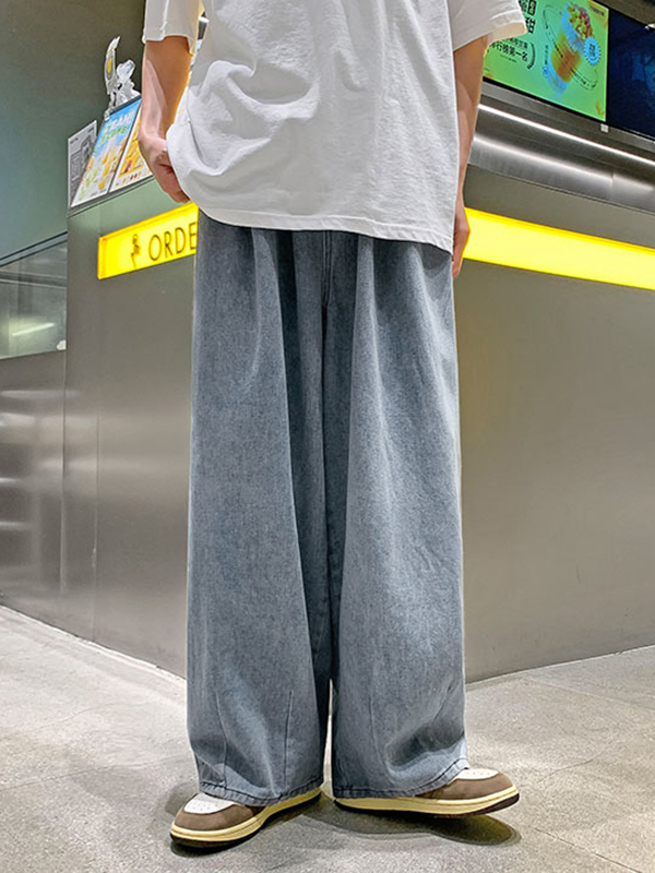 Pantalones de pierna ancha lavados y holgados para hombre