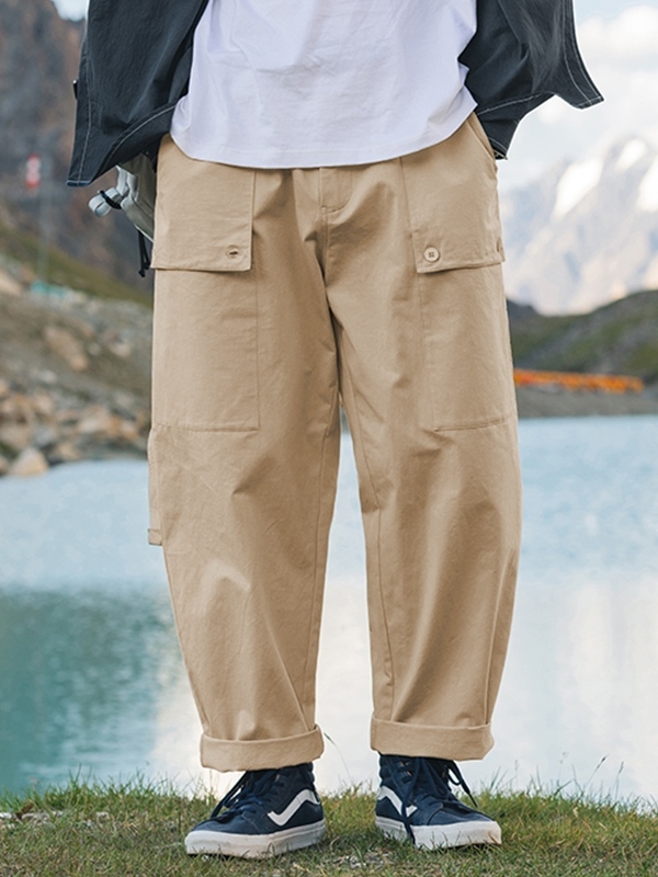 Pantalones anchos informales con bolsillo grande para hombre