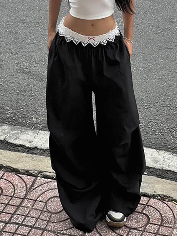 Pantalones casuales de pierna ancha con cintura de encaje