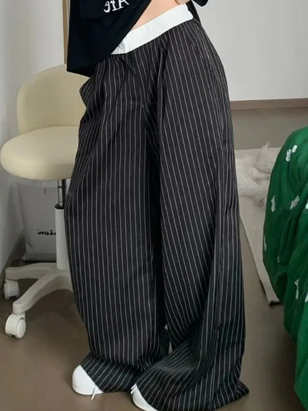 Pantalones anchos con cintura doble y diseño de patchwork y rayas en la cabeza
