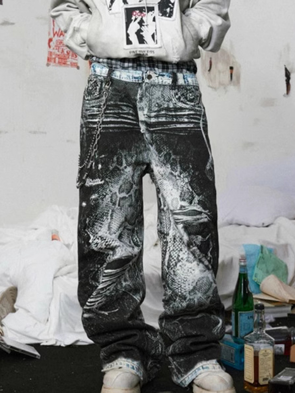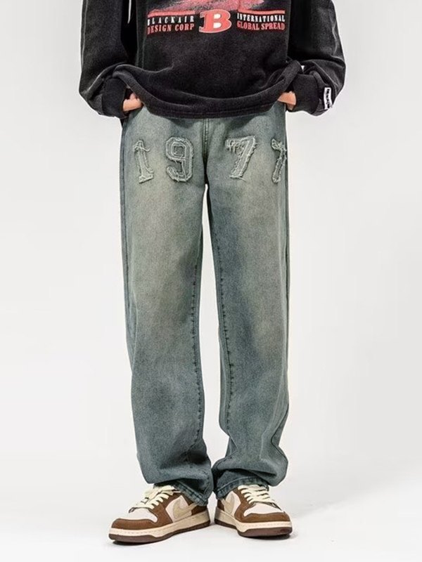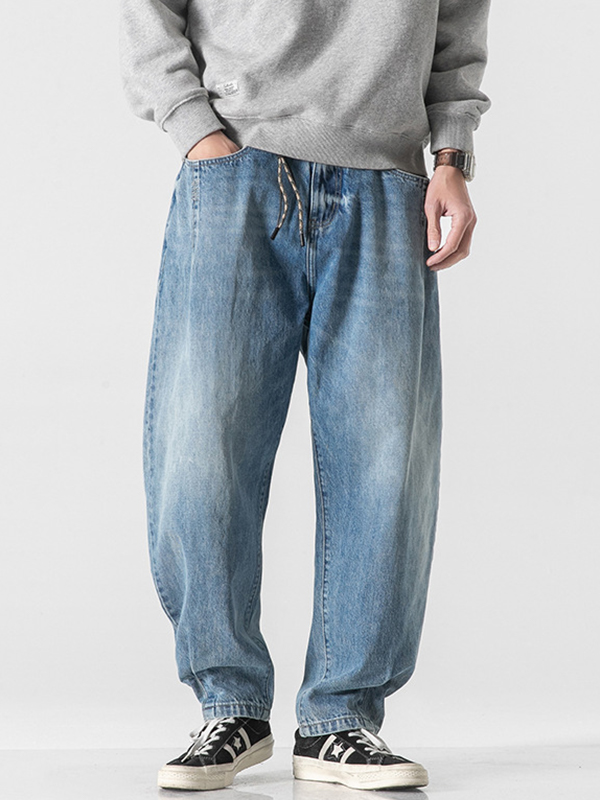 Vaqueros holgados con piernas anchas, color azul, holgado, retro japonés