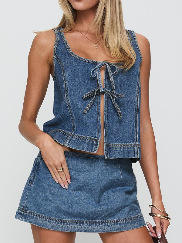 Conjunto de dos piezas de mezclilla sin mangas con cordones