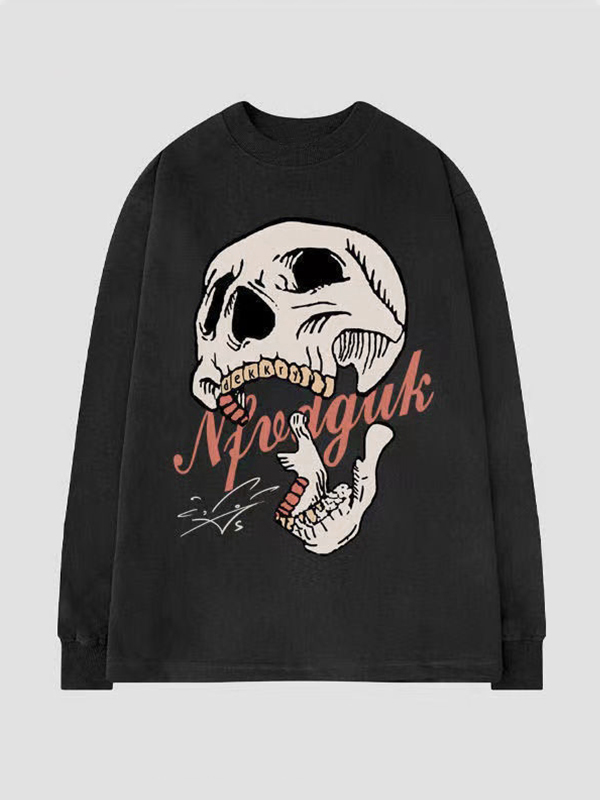 Camiseta de manga larga con estampado de calavera Hip Pop para hombre