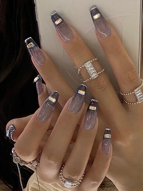 24 piezas de prensa de diamantes de imitación de colores en las uñas