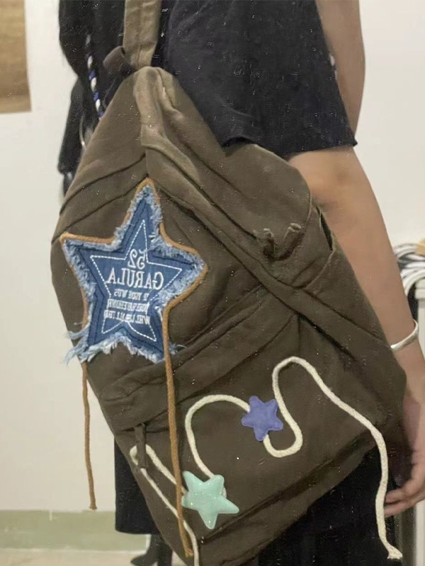 Mochila de lona con decoración de bordado de estrellas de mezclilla
