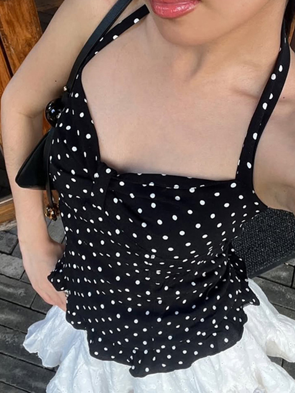 Chaleco halter con escote en V pronunciado que revela la clavícula