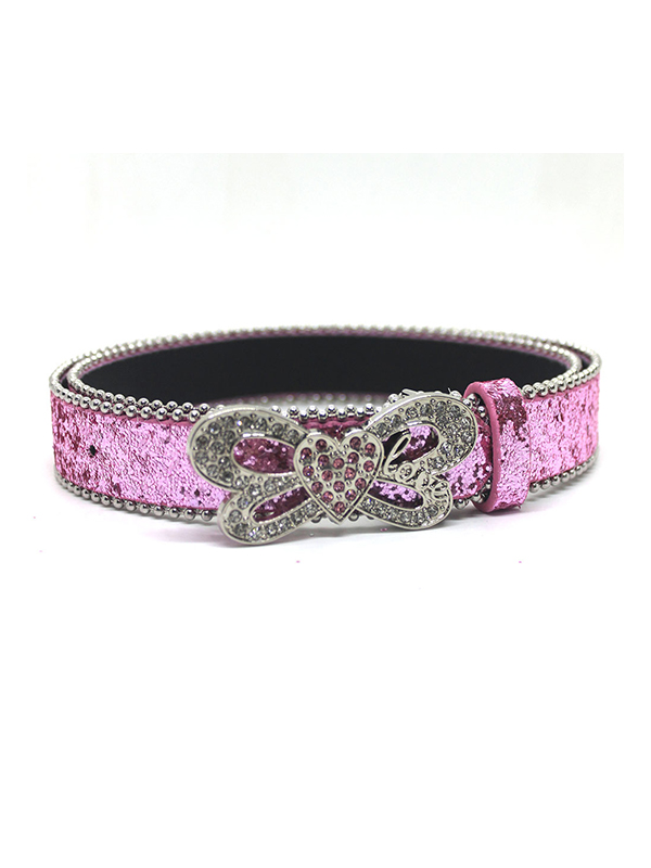 Cinturón con mariposa y corazón de diamantes de imitación y lentejuelas