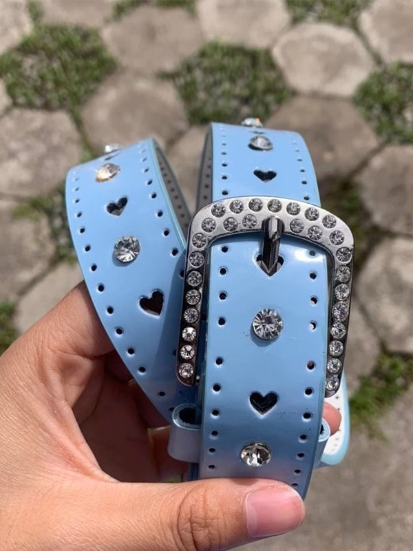 Cinturón con hebilla de diamantes de imitación brillante con recorte de corazón Y2K