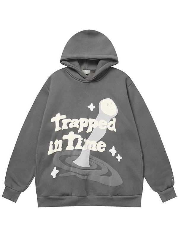 Sudadera con capucha de manga larga estampada de gran tamaño para hombre