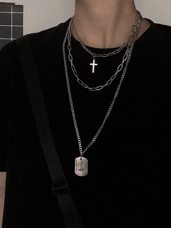 Collar con colgante geométrico de 2 piezas para hombre