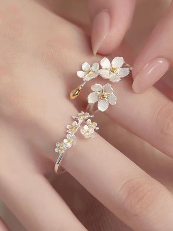 Anillo Abierto Flor Retro