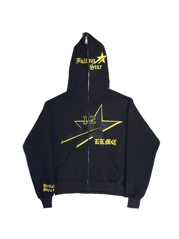 Sudadera con capucha extragrande con cremallera completa y estampado brillante para hombre
