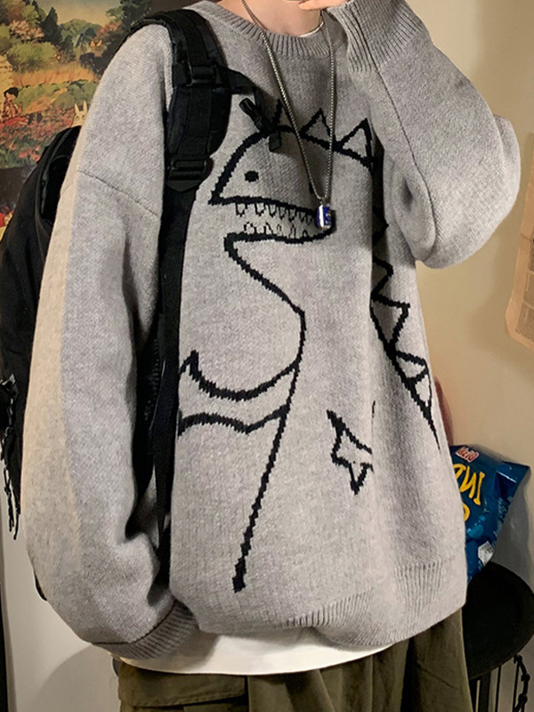 Suéter tipo jersey con dinosaurio de dibujos animados para hombre
