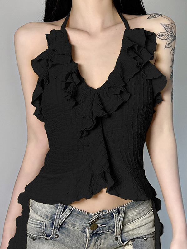 Chaleco halter con volantes texturizados inspirado en resorts
