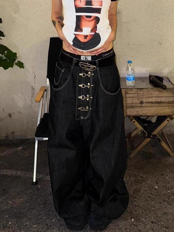 Vaqueros cargo rectos con raglán punk