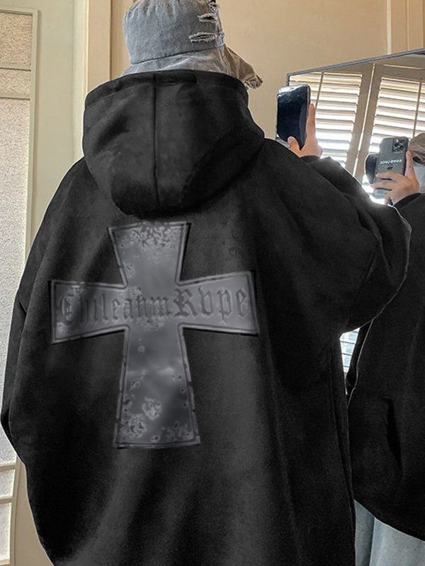 Sudadera extragrande con capucha y estampado de cruces de ante para hombre