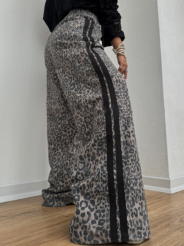 Pantalones anchos con rayas laterales de leopardo