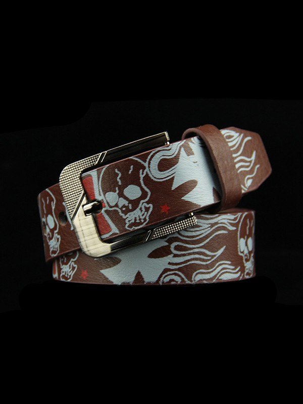Cinturón de piel sintética con calavera ardiente