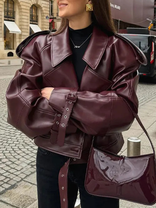 Chaqueta de moto retro con puños ajustables y solapa de PU