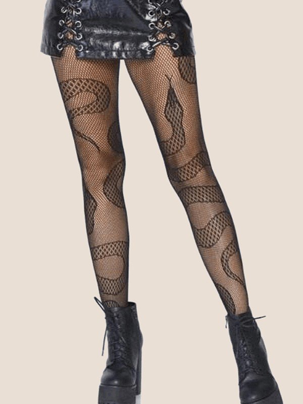 Medias de rejilla con estampado de serpiente