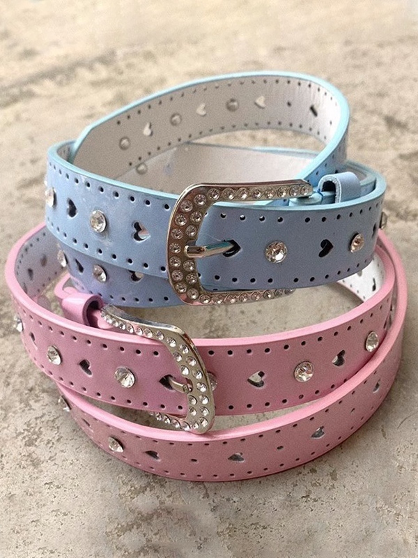 Cinturón con hebilla de diamantes de imitación brillante con recorte de corazón Y2K