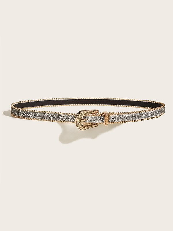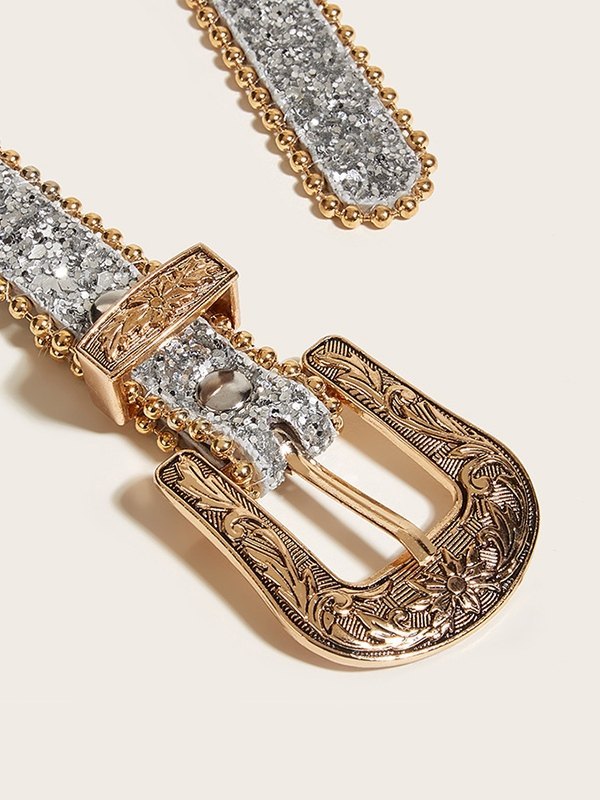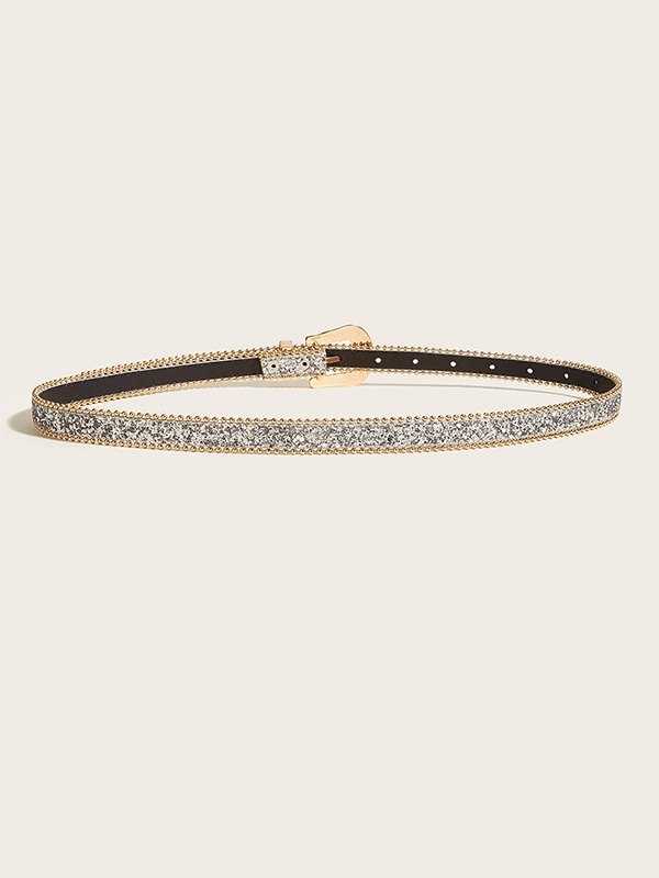 Cinturón delgado con hebilla tallada en lentejuelas