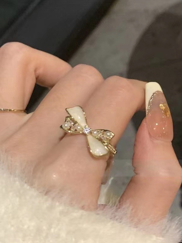 2 piezas anillo con perla y lazo Fairycore