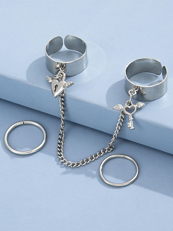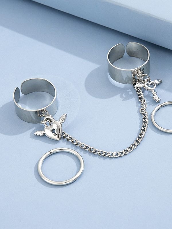 Juego de anillos de puño con colgante de llave de corazón