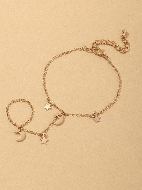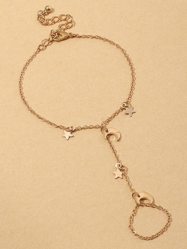 Pulsera esclava de cadena con anillo de dedo de estrella y luna