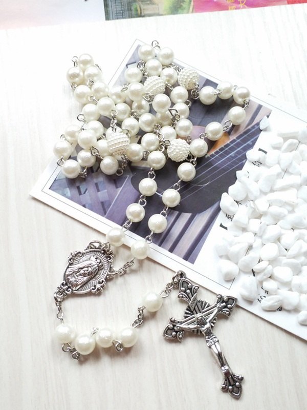 Collar de cuentas largas con dije de cruz