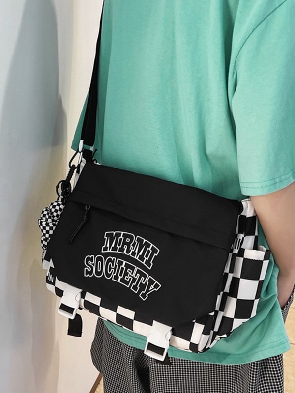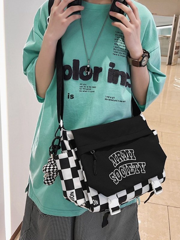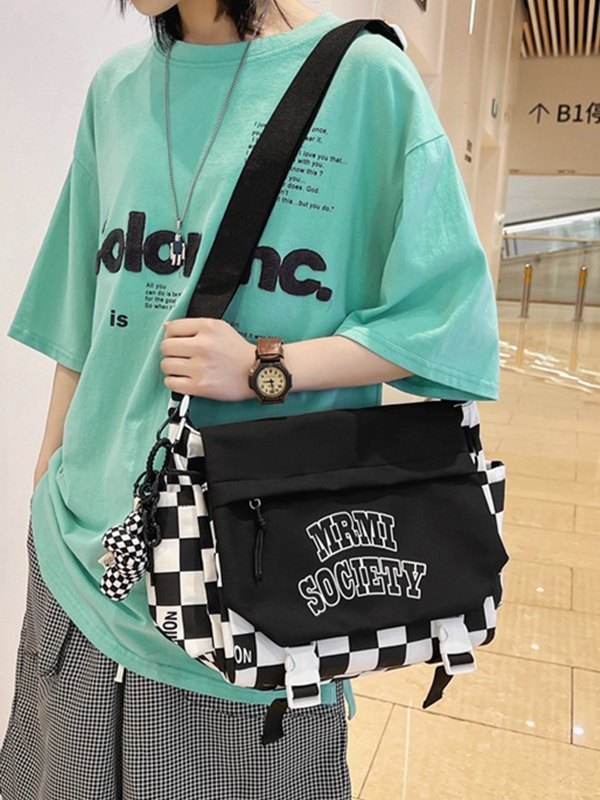 Detalles: tiene un colgante de dibujos animados desmontable, cuenta con una correa ajustable para el hombro, gráfico de logotipo en la parte delantera, con bolsillos funcionales, correas de doble hebilla y diseño de cierre con cremallera.