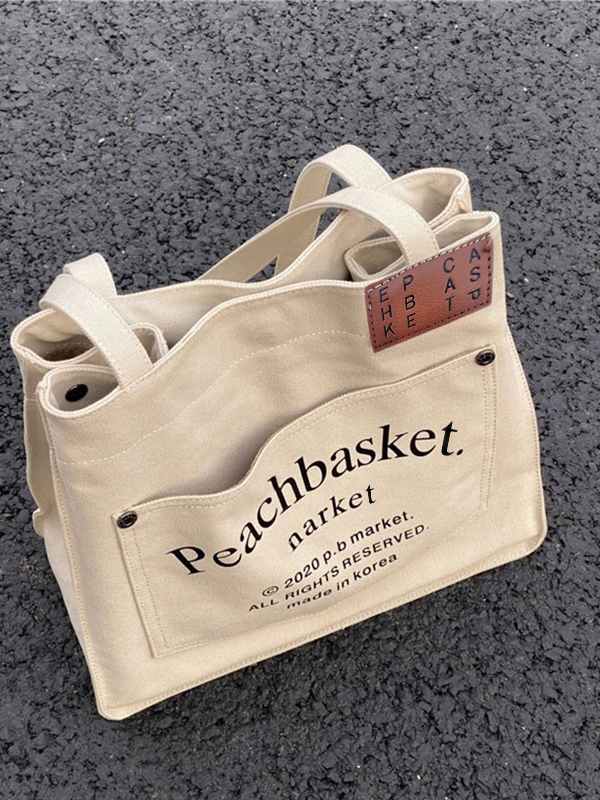 Bolso tote de lona de gran capacidad con estampado de letras