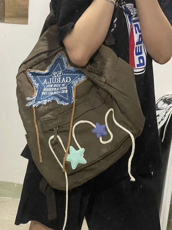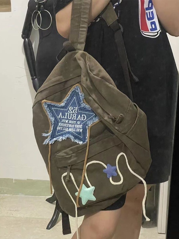 Sé el primero en valorar “Mochila de lona con decoración de bordado de estrellas de mezclilla”
