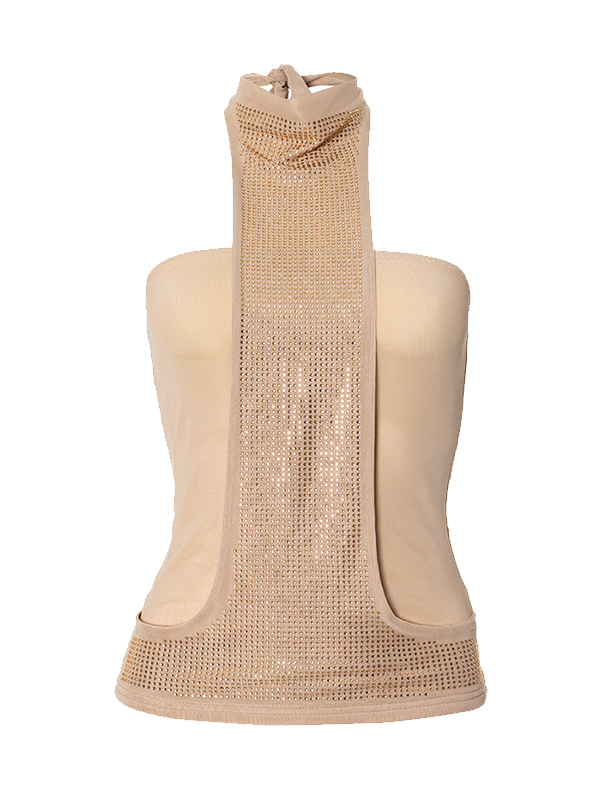 Composición del tejido: fibra de poliéster. Ajuste: ajustado. Escote: alto. Largo de manga: sin mangas.