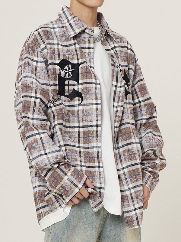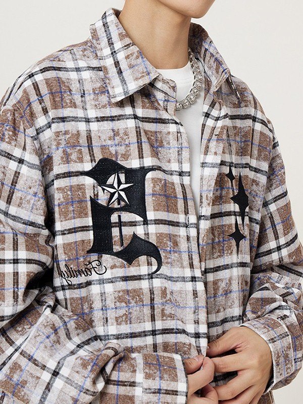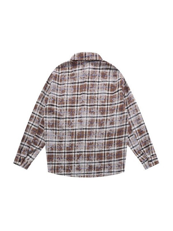 Camisa de hombre de manga larga bordada con efecto teñido anudado a cuadros