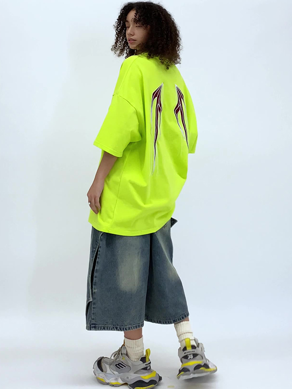 Camiseta extragrande de manga corta con estampado de alas unisex para hombre