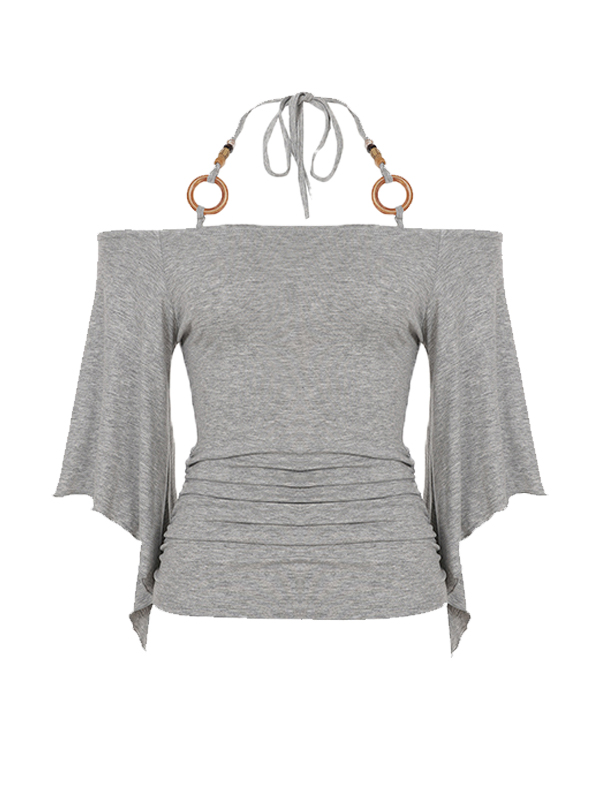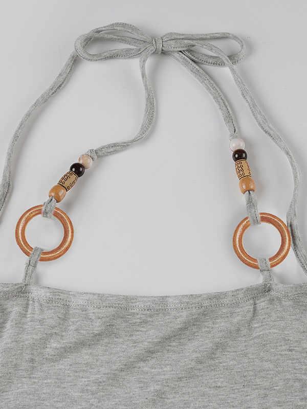 Collar de cuentas de madera con lazo frontal y manga corta