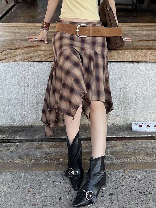 Falda larga de patchwork a cuadros retro