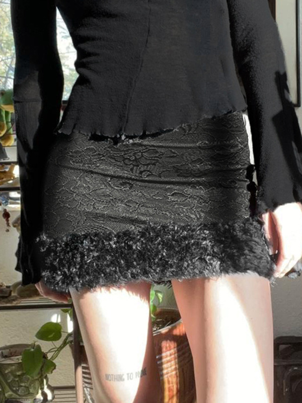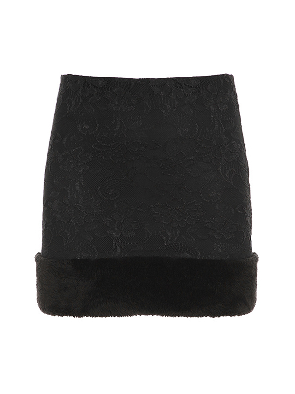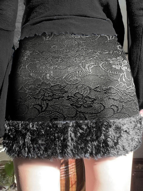 Minifaldas de doble capa con encaje y retazos de piel