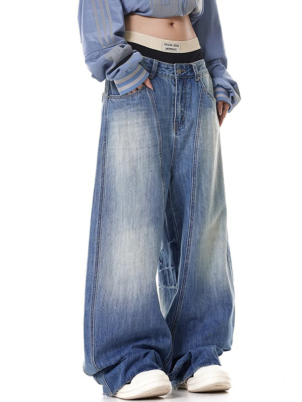 Sé el primero en valorar “Jeans boyfriend deconstruidos con estampado de relámpagos lavados retro”
